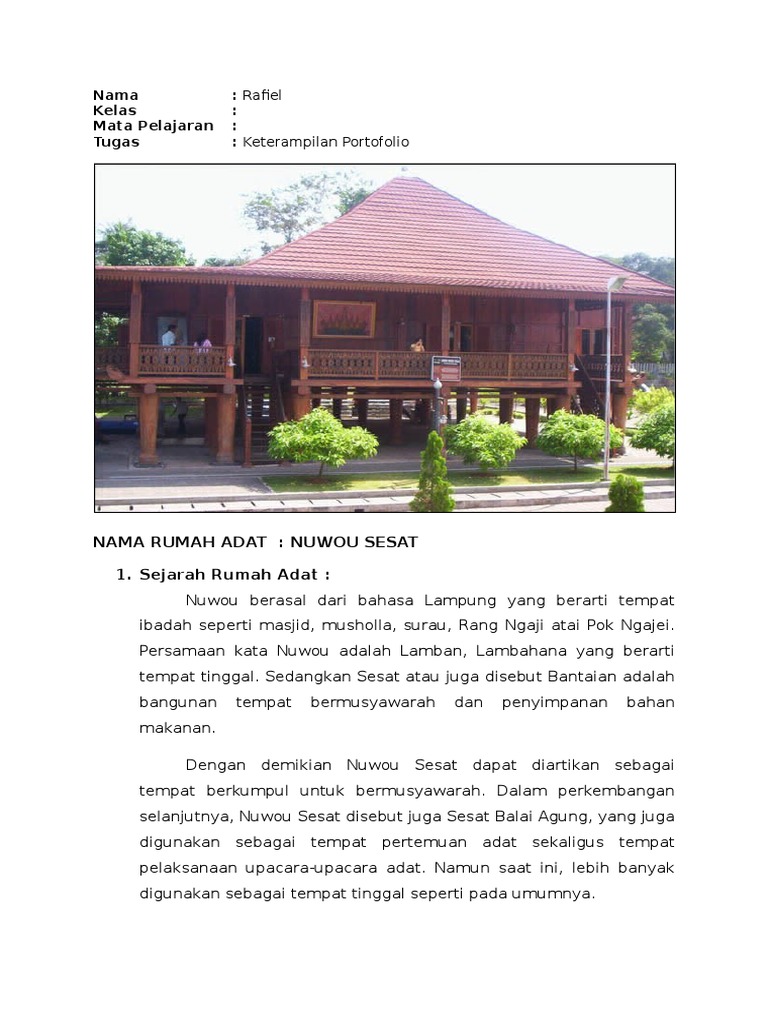 Rumah Adat Lampung Kenali Docx Document